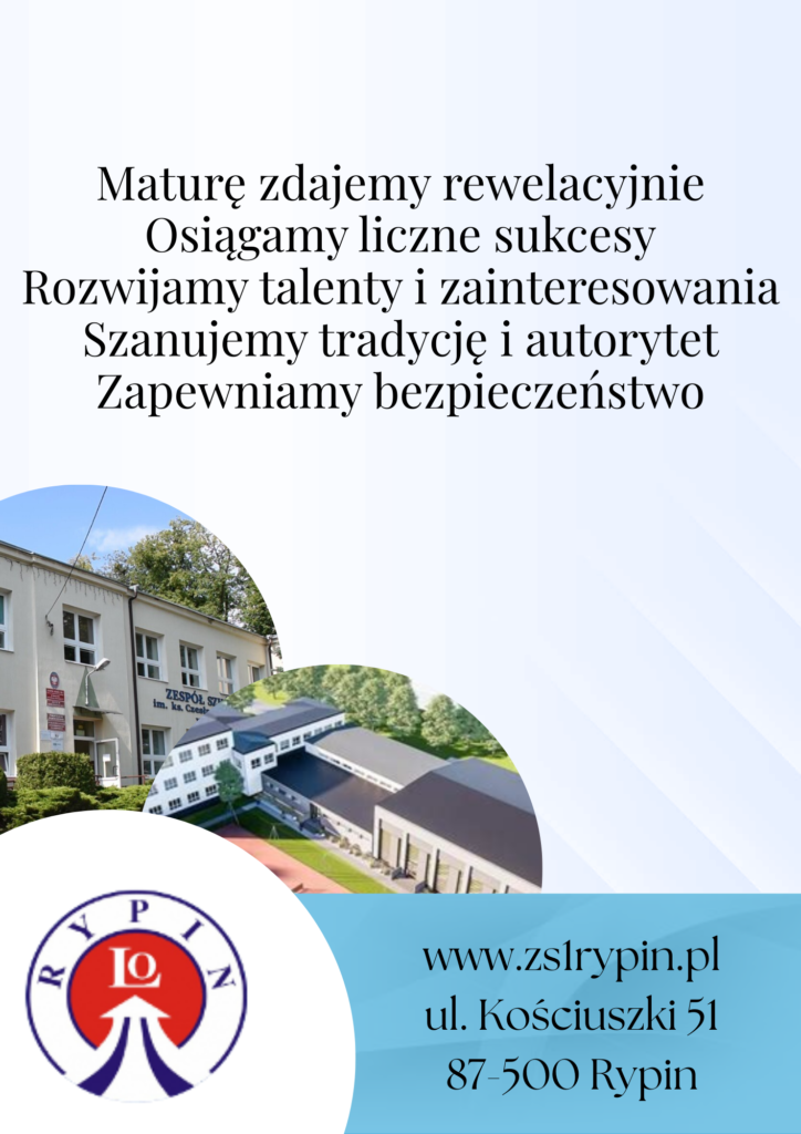 Zespół Szkół nr 1 im. ks. Czesława Lissowskiego w Rypinie to szkoła spełniająca oczekiwania uczniów i ich rodziców, doskonale przygotowująca do dalszej nauki i kariery zawodowej. Dysponujemy wysokiej jakości bazą dydaktyczną, a dzięki pomocy twórczej kadry nauczycielskiej corocznie osiągamy sukcesy w konkursach, zawodach sportowych,